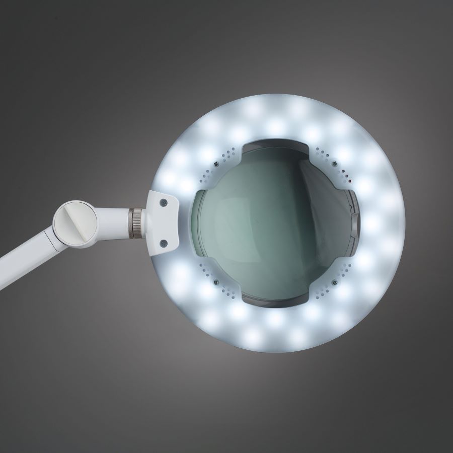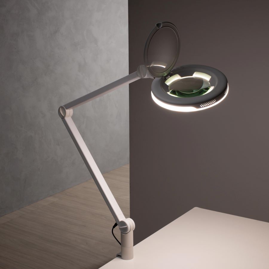 LENTE 5D LED AIR TOUCH je stolna lupa s povećalom i lećom od 5 dioptrija. LED svjetiljka ima zaštitni poklopac i praktične kontrole na dodir, zahvaljujući kojima je moguće odabrati različite vrste toplog ili hladnog svjetla i svjetline. Glava svjetiljke može se okretati za 360 stupnjeva.
