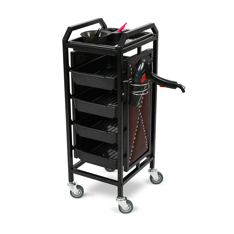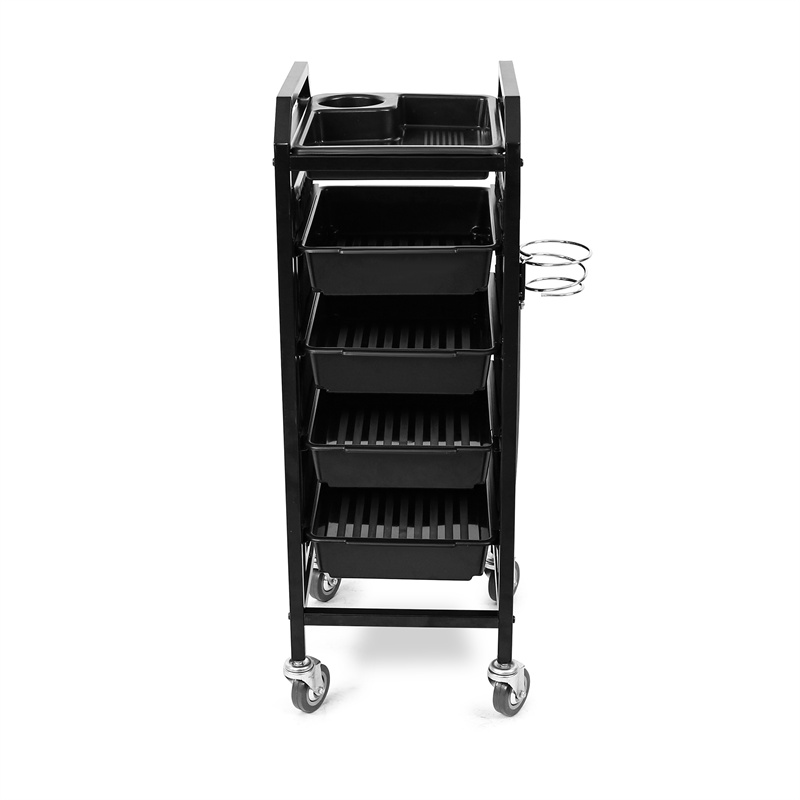 Opremljena su s četiri prostrane ladice koje omogućuju uredno i praktično pohranjivanje svih vrsta frizerskog pribora – boja, četki, škara, sprejeva i ostalih potrepština. Čvrsta i stabilna konstrukcija jamči dugotrajnu uporabu čak i u najzahtjevnijim uvjetima rada. Kotačići omogućuju tiho i jednostavno premještanje, a sustav rotacije kotača olakšava pristup priboru iz različitih kutova salona.