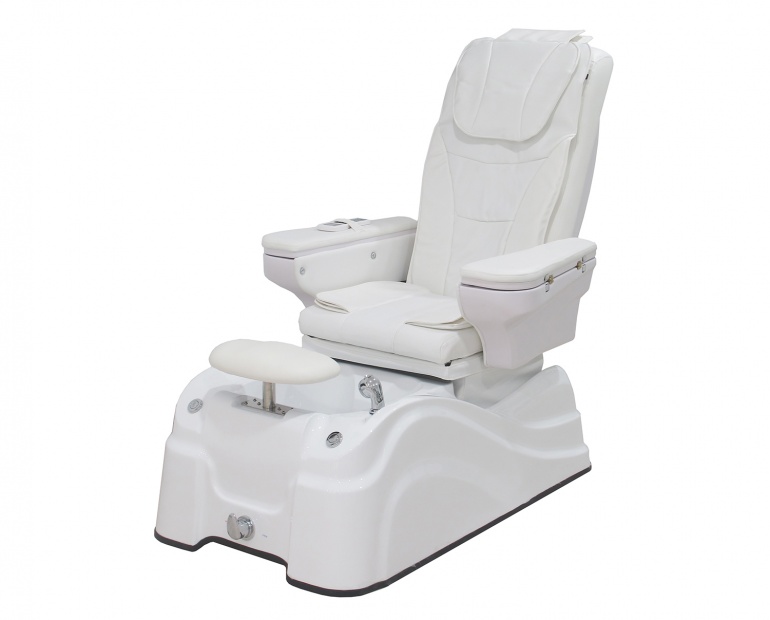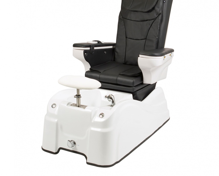 Udobna i elegantna SPA fotelja za pedikuru s visokokvalitetnim PU presvlakama. Opremljen je s 2 motora koji kontroliraju nagib naslona i hod sjedala naprijed-natrag. Opremljen je zakretnim naslonima za ruke kako bi se omogućio lak pristup stolcu i uključuje posudu za manikuru koja je potpuno integrirana. Shiatsu masaža u naslonu i masaža zračnim pritiskom u sjedištu. Whirlpool SPA umivaonik za noge s tušem i naslonom za noge podesivim po visini. Uključen je MP3 glazbeni player s USB-om i priključkom za SD karticu.